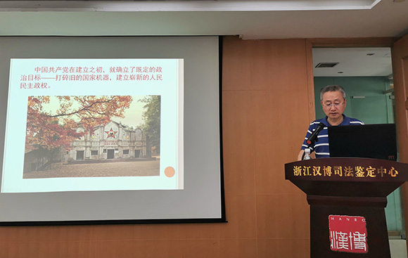 奮斗百年,披荊斬棘,走向勝利。6月30日下午,由浙江省漢博鑒定科學技術研究院、浙江漢博司法鑒定中心聯合推出的《漢博講堂》第二課開課。本次特邀杭州市百名優秀黨課主講人胡光春主任講授——《披荊斬棘,走向勝利——從建黨到建國28年黨在每個第七年的奮斗歷程》。漢博中心黨支部書記梁鋒主持,中心黨員鑒定人、入黨積極分子等參加講座。